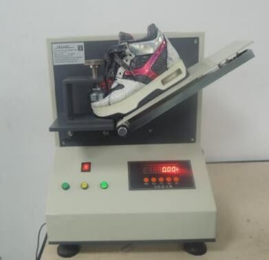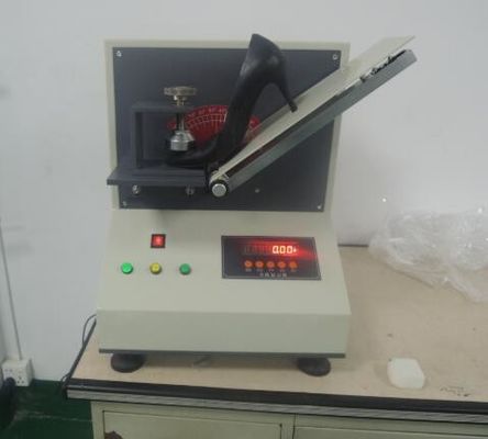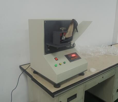 2. Pasang sampel (sepatu atau sol sepatu), dan tempatkan garis zig-zag sampel pada poros yang berputar untuk menekan tutup kaki;