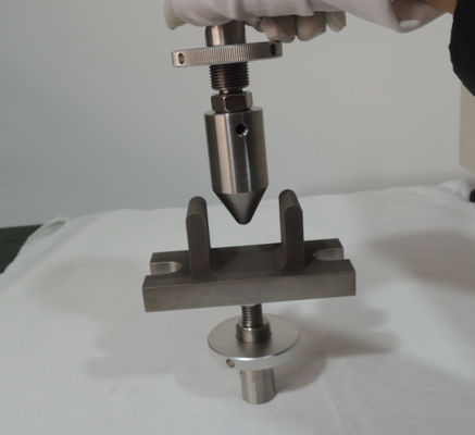 Ujung dipusatkan secara vertikal pada 15mm sampai 20mm pada akhir dot, dan tekanan 200 ± 10N diterapkan pada kecepatan 10 ± 5mm / menit selama 1 ± 0,5 detik. Periksa apakah putingnya tertusuk.