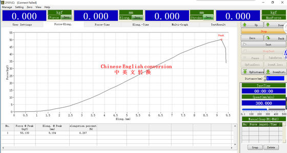 2. Antarmuka komputer jaringan standar, dengan perangkat lunak pengukuran dan kontrol profesional khusus, tampilan real-time perpindahan gaya, waktu gaya, waktu perpindahan, kurva tegangan-regangan, perhitungan otomatis gaya maksimum, gaya luluh, gaya rata-rata, maksimum deformasi, titik luluh, modulus elastisitas dan parameter lainnya, serta fungsi pengeditan dan pencetakan laporan yang fleksibel.Laporan dapat menampilkan dan mencetak nilai kekuatan tarik (Mpa).