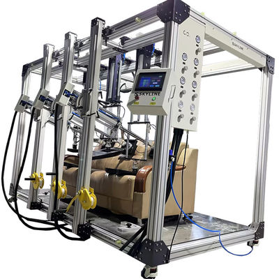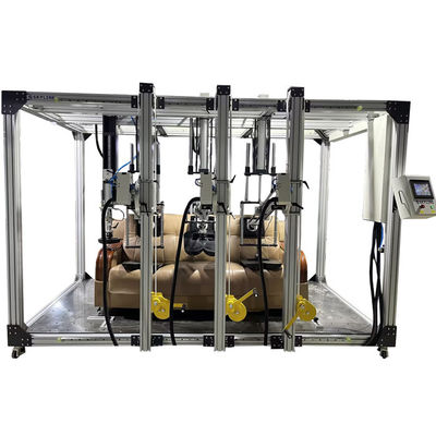 Penguji ini mensimulasikan kondisi penggunaan normal untuk menentukan daya tahan sofa di bawah beban berulang jangka panjang.Prinsipnya adalah untuk mensimulasikan penggunaan fungsional normal untuk menentukan kekuatan struktur tiga sofa dengan menerapkan kursi dan punggung dengan bebanMenggunakan modul bentuk dan beban tertentu, dengan bentuk tertentu, frekuensi, masing-masing, pengulangan kursi beban, sandaran dan sandaran lengan, dan ketiga tes ini dapat bekerja bersama-sama atau secara independen,juga posisi tes diatur.
