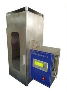 Alat Uji Mudah Terbakar untuk kain terdiri dari kabinet lembaran logam vertikal yang ditutup pada tiga sisi dan atas dan bawah.Sisi depan tetap terbuka untuk memasukkan benda uji.Benda uji digantung dari klip sedemikian rupa sehingga menggantung bebas di tengah kabinet.Dua kabel penanda dipasang di belakang kain yang diuji sedemikian rupa sehingga terletak 28 cm dan 155 cm di bawah klip.Klip tambahan yang dapat dilepas juga disediakan untuk memungkinkan pengujian spesimen kain tahan api yang lebih pendek.