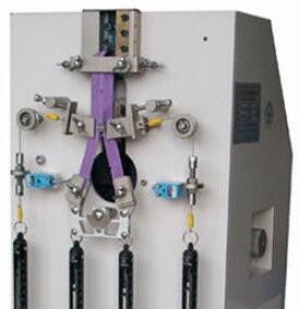 Penguji Ritsleting, untuk menentukan ketahanan terhadap timbal balik ritsleting (pengikat geser), benda uji dikenai sejumlah operasi siklik tertentu saat berada di bawah tegangan lateral dan longitudinal.